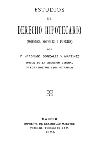 Estudios de derecho hipotecario (orígenes, sistemas y fuentes)