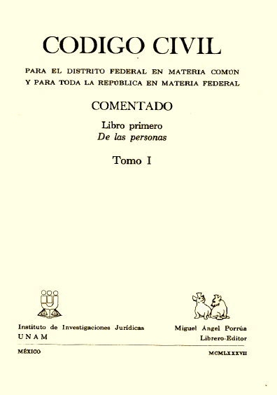 Código civil para el Distrito Federal en materia común y para toda la República en materia federal comentado, t. I
