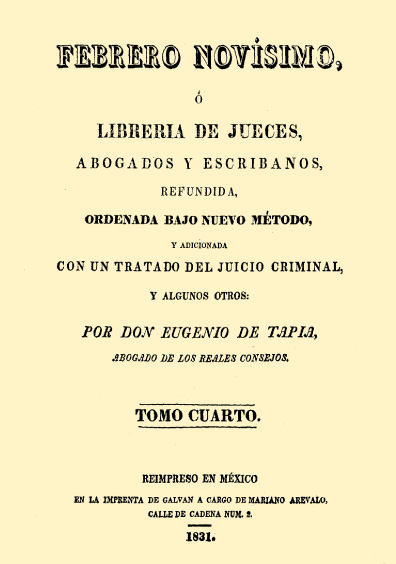 Librería de jueces, abogados y escribanos, refundida, ordenada bajo nuevo método y adicionada con un tratado del juicio criminal