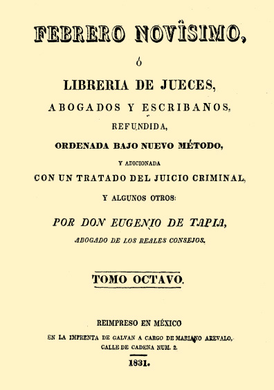 Librería de jueces, abogados y escribanos, refundida, ordenada bajo nuevo método y adicionada con un tratado del juicio criminal