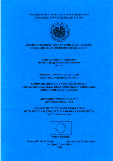 Opinión consultiva OC-12/91 del 6 de diciembre de 1991. Compatibilidad de un proyecto de ley con el artículo 8.2.h de la Convención Americana de Derechos Humanos