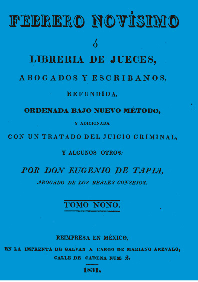 Librería de jueces, abogados y escribanos, refundida, ordenada bajo nuevo método y adicionada con un tratado del juicio criminal