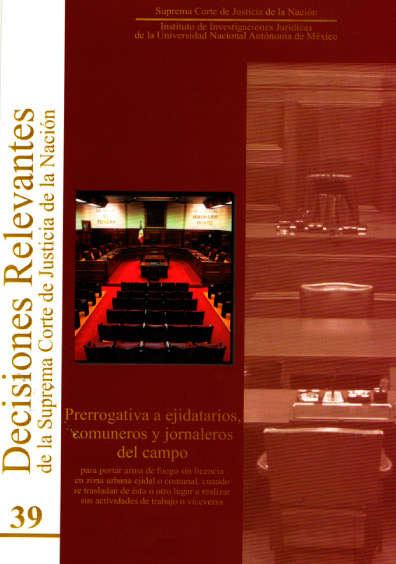 Decisiones relevantes de la Suprema Corte de Justicia de la Nación, núm. 39, Prerrogativa a ejidatarios, comuneros y jornaleros del campo para portar arma de fuego sin licencia en zona urbana ejidal o comunal, cuando se trasladan de ésta u otro lugar a realizar sus actividades de trabajo o viceversa
