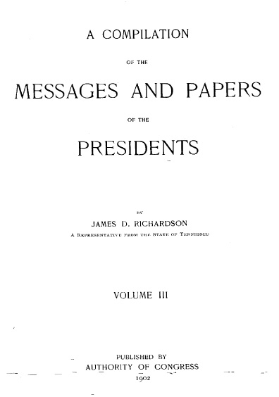 A compilation of the messages and papers of the presidents, 1789-1902, volume III