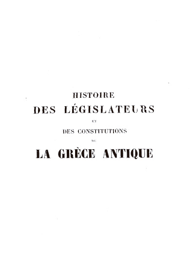 Histoire des législateurs et des constitutions de la Grèce antique, tome premier