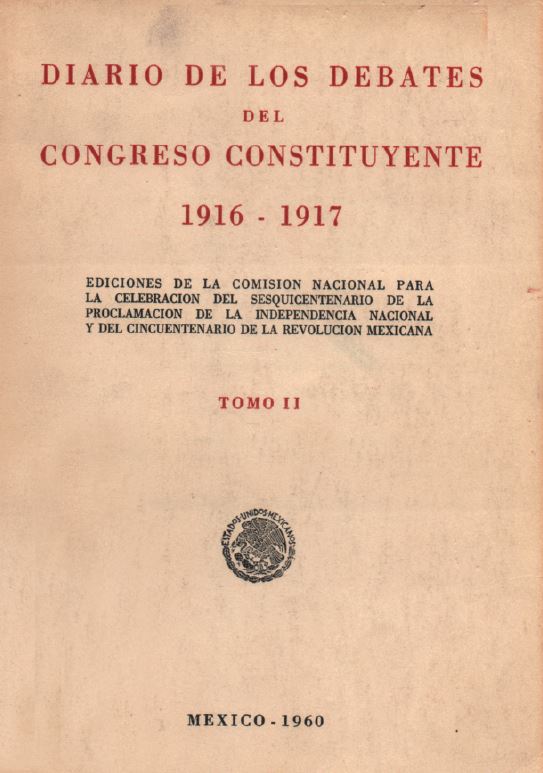 Diario de los debates del Congreso Constituyente 1916-1917, t. II. Colección Instituto Nacional de Estudios Históricos de la Revolución Mexicana