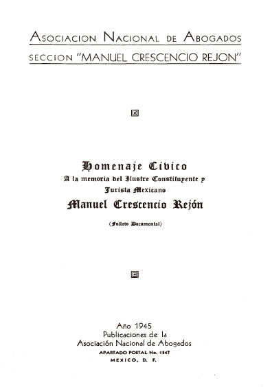 Homenaje cívico a la memoria del ilustre constituyente y jurista mexicano Manuel Crescencio Rejón. Colección Jorge Denegre-Vaught Peña