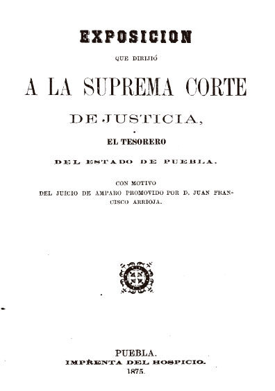 Exposición que dirigió a la Suprema Corte de Justicia el tesorero del estado de Puebla. Colección Jorge Denegre-Vaught Peña