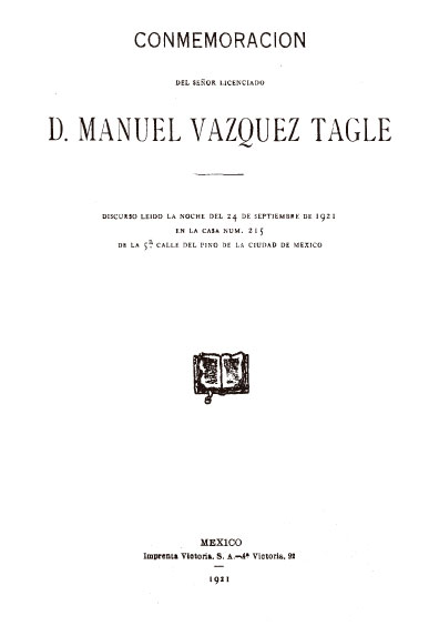 Conmemoración del señor licenciado D. Manuel Vázquez Tagle. Colección Jorge Denegre-Vaught Peña