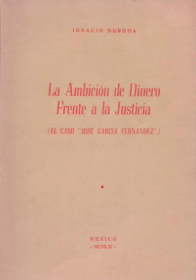 La ambición de dinero, frente a la justicia (el caso José García Fernández). Colección Jorge Denegre-Vaught Peña