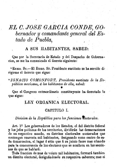 Ley orgánica electoral de 1872. Colección Jorge Denegre-Vaught Peña