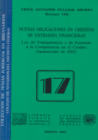 Nuevas obligaciones en créditos de entidades financieras. Ley de transparencia y de fomento a la competencia en el crédito garantizado. Colección Colegio de Notarios del Distrito Federal
