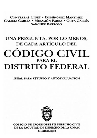 Una pregunta, por lo menos, de cada artículo, del Código Civil para el Distrito Federal. Ideal para estudio y autoevaluación