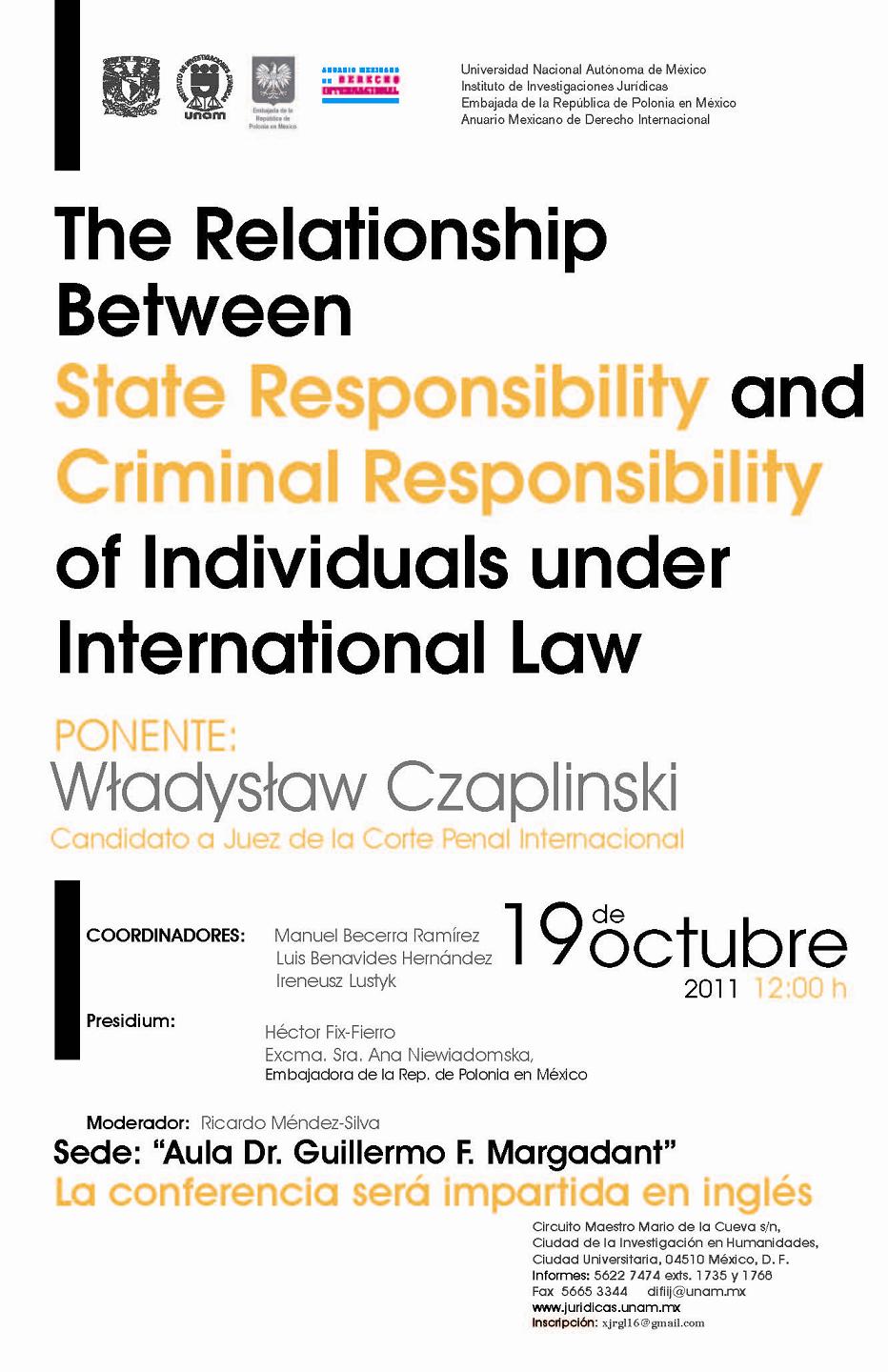 Conferencia The Relationship Between State Responsibility and Criminal Responsibility of Individuals under International Law