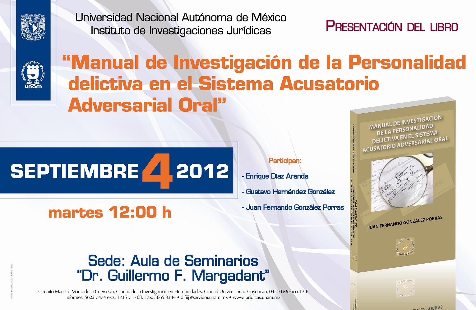 Presentación del Manual de Investigación de la Personalidad Delictiva en el Sistema Acusatorio Adversarial Oral
