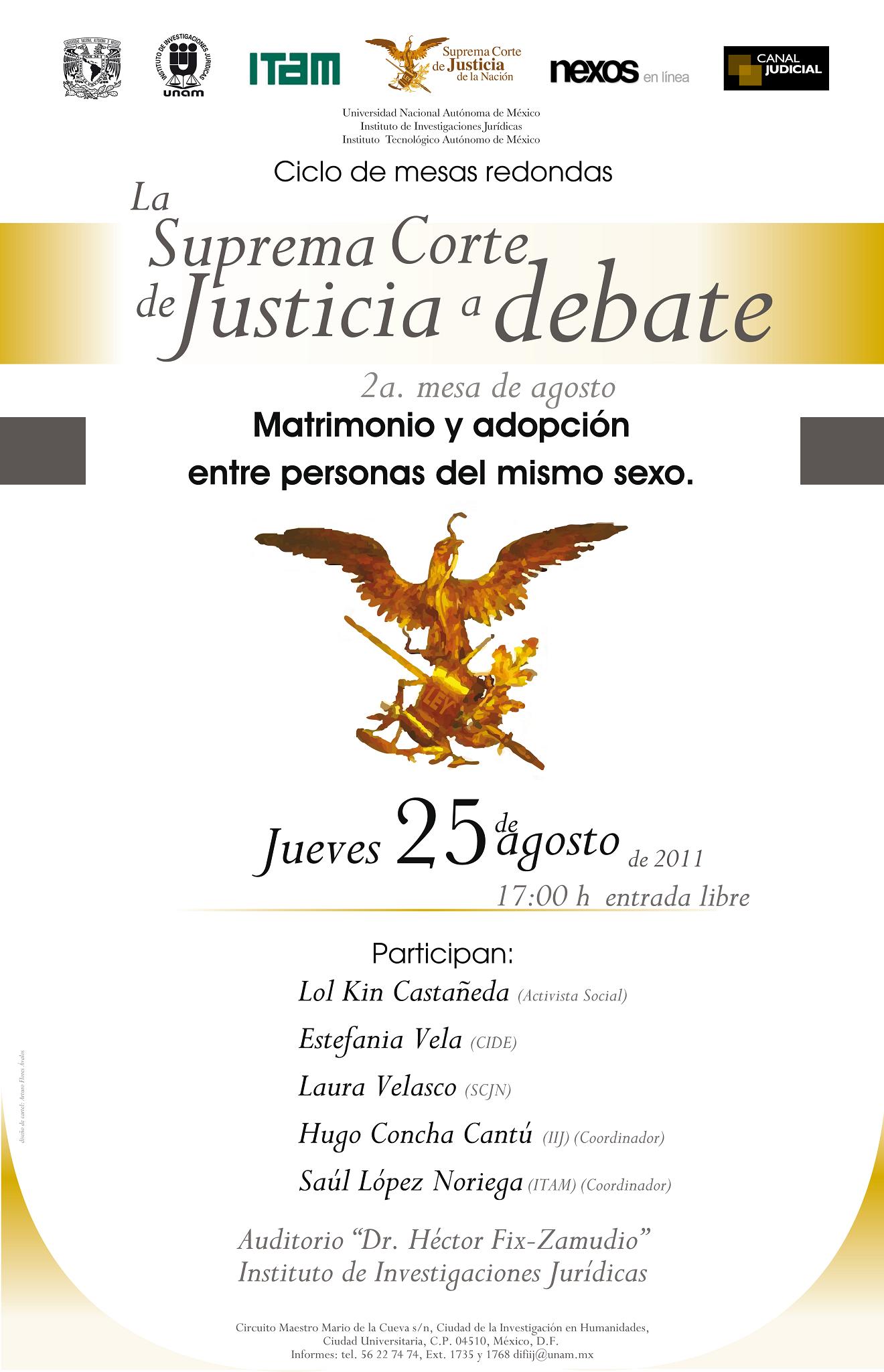 Es parte del programa: Ciclo de Mesas Redondas La Suprema Corte de Justicia a Debate: análisis de la sentencia sobre matrimonios y adopción de parejas del mismo sexo