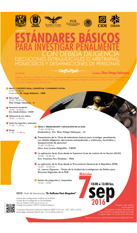 Es parte del programa: Seminario "Estándares básicos para investigar penalmente con debida diligencia ejecuciones extrajudiciales o arbitrarias, homicidios y desapariciones de personas"